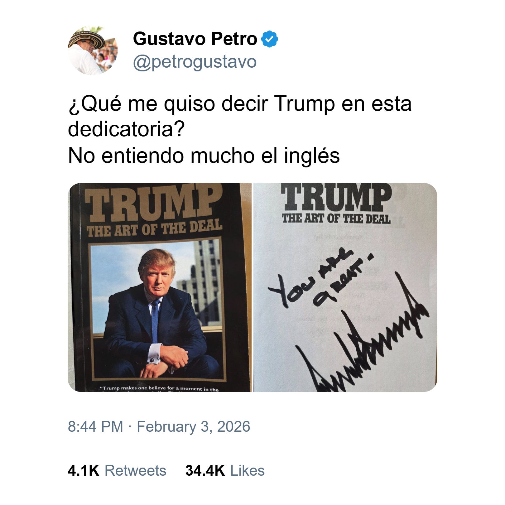 At the White House, though, they got along. Trump said, “We worked on it,” referring to their cooperation on fighting drugs. Petro asked for help catching drug traffickers and even wanted Trump to help solve Colombia’s dispute with Ecuador. Trump also gave Petro a handwritten note that said, “Gustavo – A great honor – I love Colombia.”