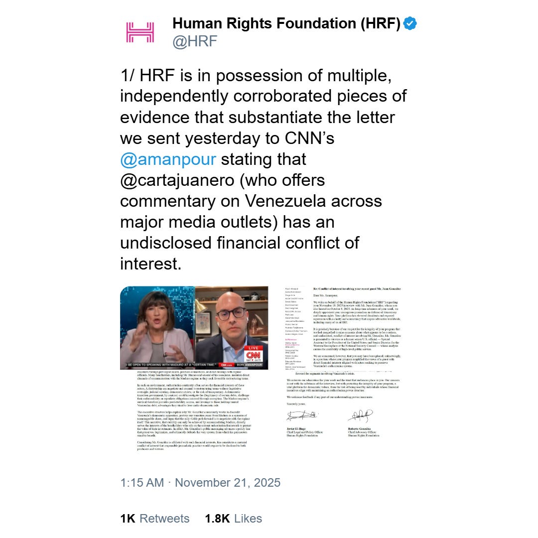 Take Juan González as an example. He’s a former Biden advisor who’s been in the news again this week. The Human Rights Foundation accused him of having conflicts of interest with creditors and lobbying against sanctions on Maduro, though he denies it.