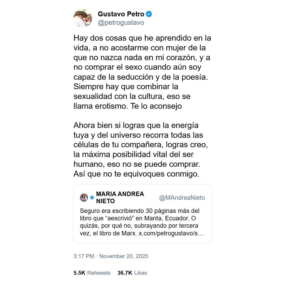 Colombians deserve a president who doesn’t turn himself into a joke every few weeks. This isn’t normal for a leader. It’s just one more scandal in a long list, and people have every right to be tired of it.